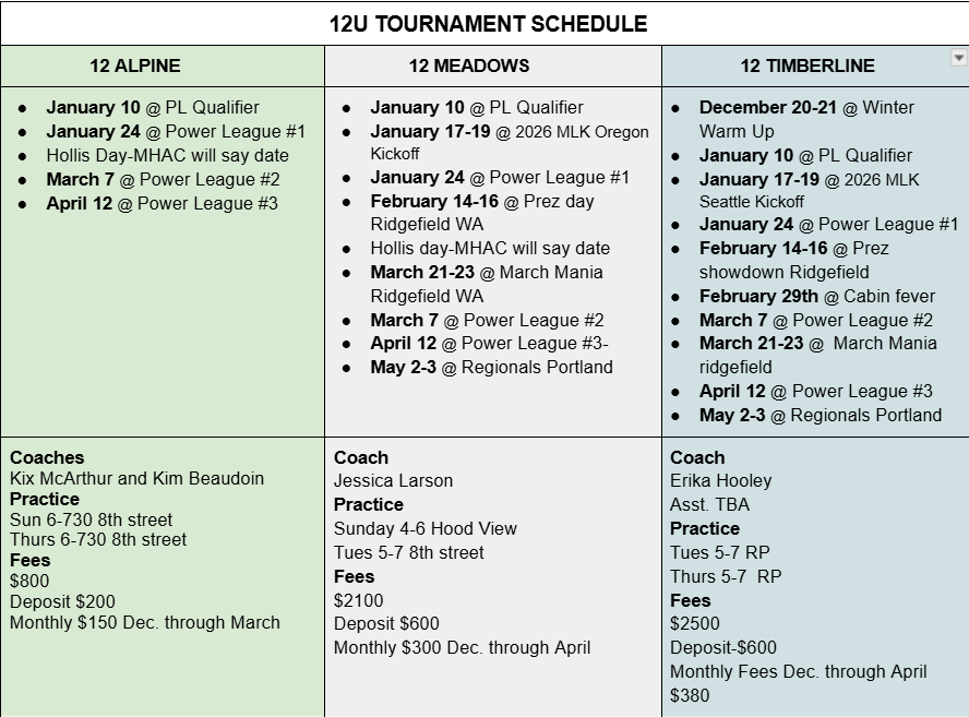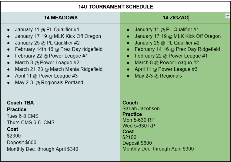 Schedule is subject to change pending tournament availability, weather and other factors. Please follow up on your team GameChanger page for the most up to date schedule and information.